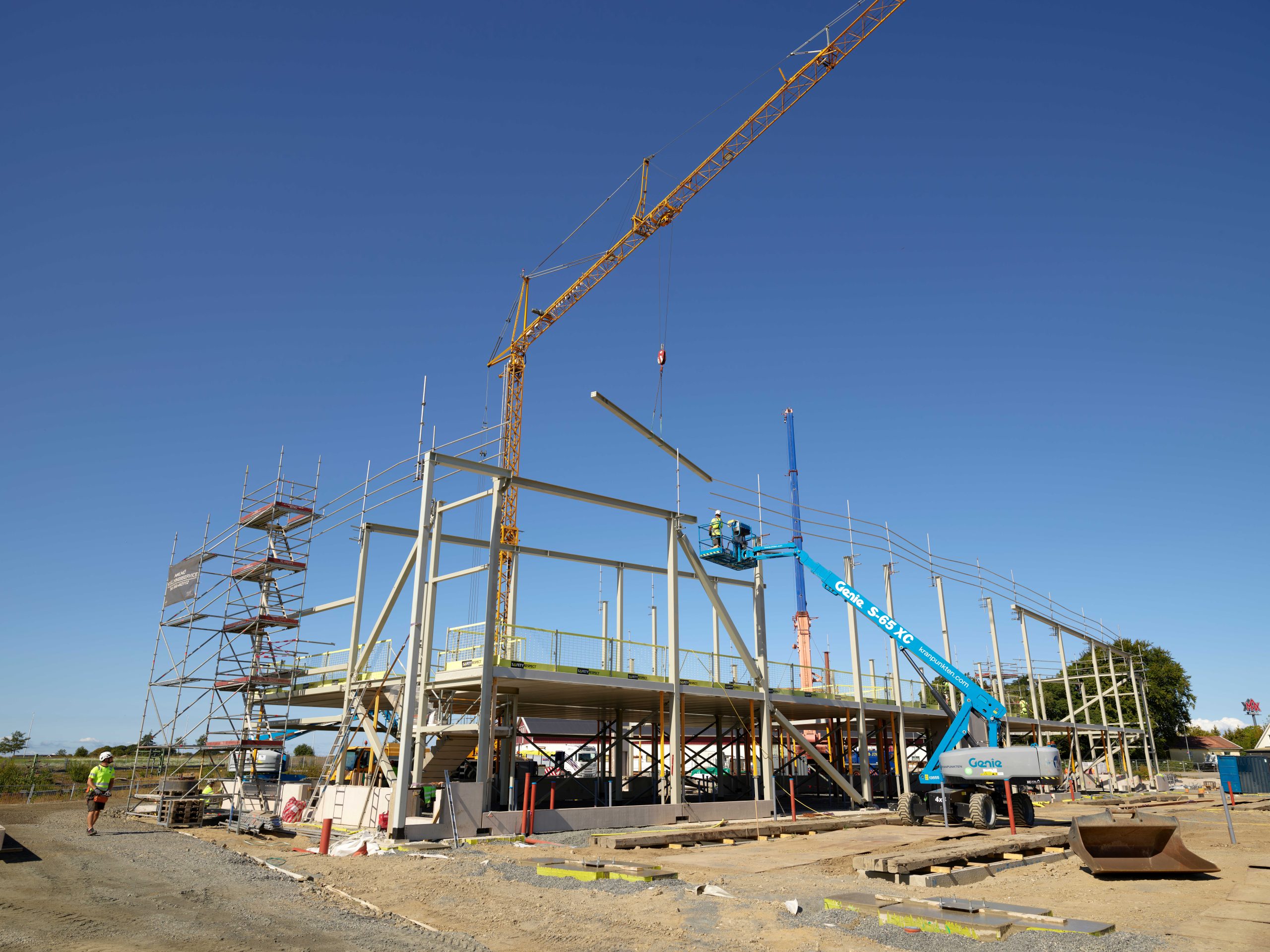 Vi håller på att bygga en bussdepå på 60×120 m med 1900 m2 HD/F-bjäkllag. Bussarna anländer i början av 2027! Byggnad uppförd i samarbete med PEAB.